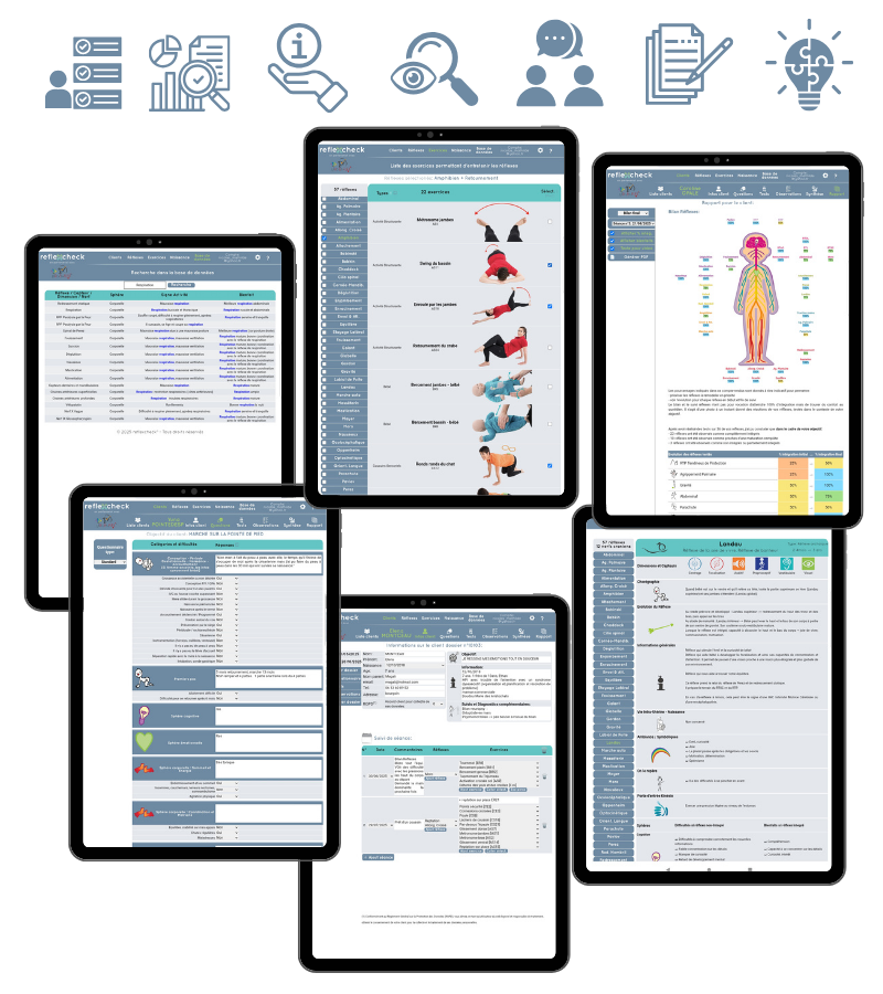 le suivi de séance avec le détail des réflexes et exercices travaillés,
